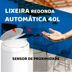 Lixeira Redonda Automatica Com Sensor de Proximidade Branco 40l