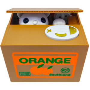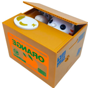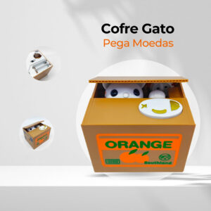 COFRE GATO PEGA MOEDAS – COFRE INTERATIVO – PRESENTE CRIATIVO – COFRE INFANTIL – EDUCAÇÃO FINANCEIRA – COFRE LARANJA – BRINQUEDO EDUCATIVO