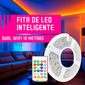 Transforme seus ambientes com o Kit Fita Led Inteligente Dual WI-FI 10 Metros . Com conectividade Dual Wi-Fi, controle via aplicativo e compatibilidade com assistentes virtuais.